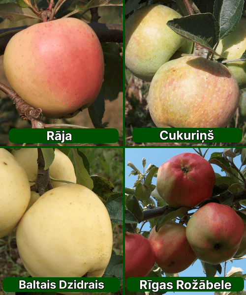 Rāja– agra ziemas šķirne. Augļi lieli pat ļoti lieli. Dzelteni ar intensīvi sarkanu virskrāsu, koniski, aromātiski, saldskābi, garša teicama.