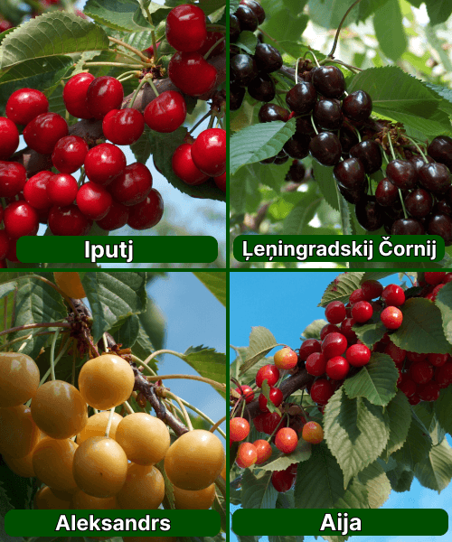 Aleksandrs– augļi palieli, dzelteni, apaļi, mīkstums vidēji blīvs, sulīgs saldskābs. Nogatavojas jūlija pirmajā dekādē.